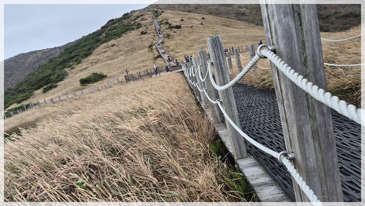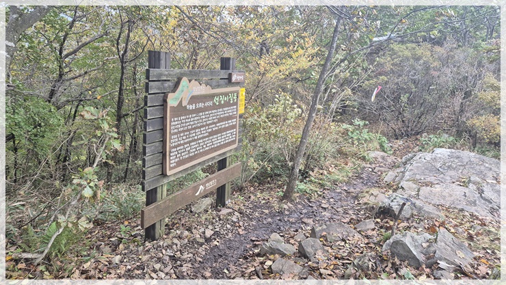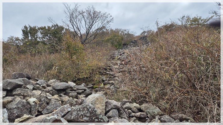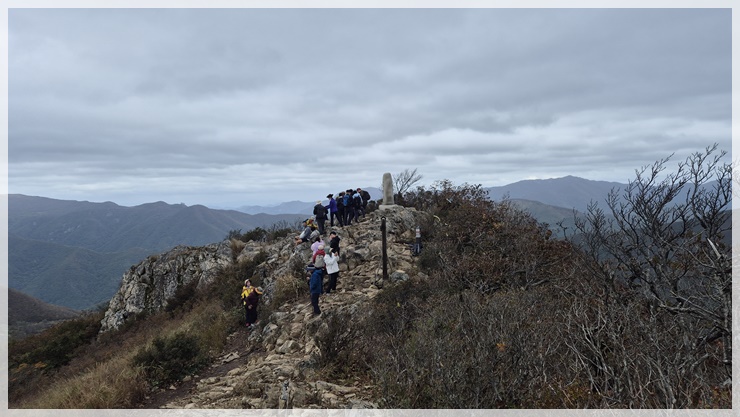 영축산 정상에 올랐다 단조산성 방향으로 하산합니다. 단조산성 등로는 억새 복원을 위한 금줄을 쳐놓았는데 넘으려니 약간 미안한 감이 듭니다.