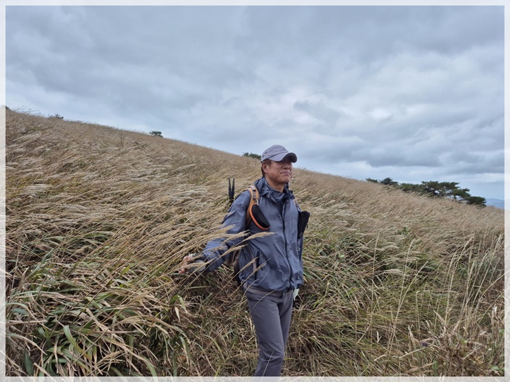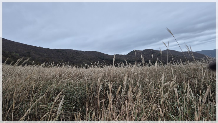 무슨 연유인지 모르지만 신불산 정상 돌탑이 무너져 내렸습니다. 신불재에도 몸을 가눌 수 없을 정도의 세찬 칼바람이 붑니다. 바람을 피해 억새밭 사이에 자리를 잡고 간식 시간을 가지려 하였으나 인간적으로 너무 춥습니다. 어제저녁에 날씨가 추울 거라며 패딩을 가져가라는 마눌님의 말을 듣지 않은 것이 약간 후회스럽습니다.