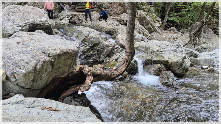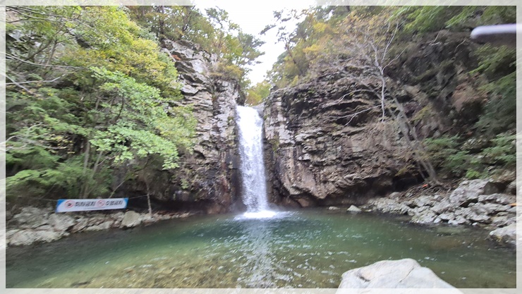 파래소폭포에 들러 보기로 했습니다. 파래소폭포는 워낙 유명한 곳이기에 이전에 한번쯤 가 보았을 것이라 생각했는데 안코는 가 본적이 없는 곳이었습니다. 우렁차게 물줄기를 쏟아내는 자태가 황홀경을 안겨 줍니다. 한마디로 멋지다 입니다.