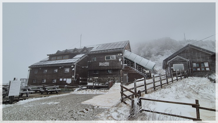 장터목대피소는 항상 편안함과 포만함을 제공합니다. 중산리 탐방안내소 앞 마당의 잔설은 이미 다 녹고 없습니다.
