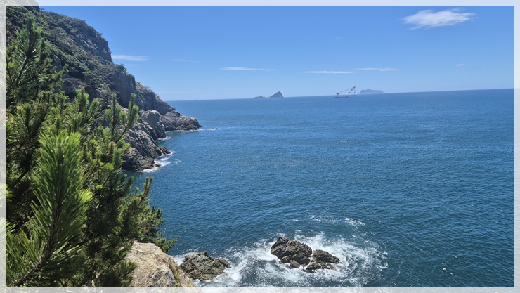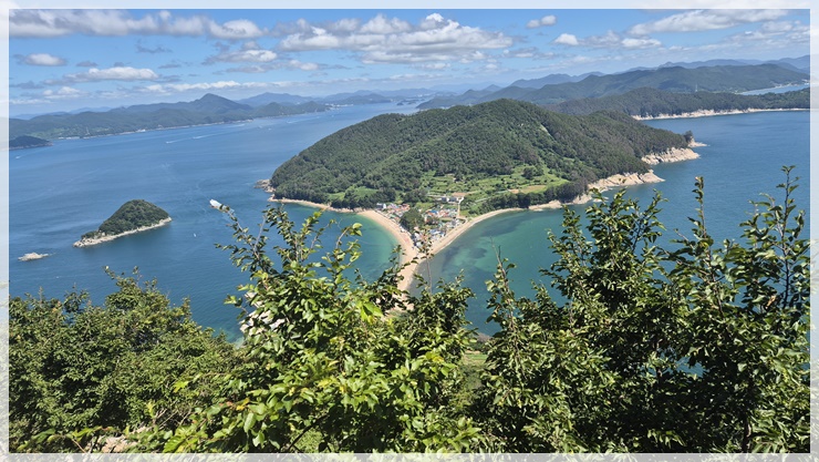 비진도는 섬 양단에 선유봉과 대동산이 있고 가운데를 연결하는 콘크리트 길을 따라 내해는 모래사장이고 먼바다는 몽돌밭으로 되어 있으며 그 형태는 흡사 땅콩 모양으로 생겼습니다. 망부석바위 전망대, 미인전망대에서 바라보는 비진도 해수욕장과 한려해상의 올망졸망 섬들이 퍽이나 아름답습니다. 흔들바위를 지나 선유봉 정상에서 약간 휴식을 하고 비진암을 지나고 나니 이내 외항 선착장이 나옵니다.