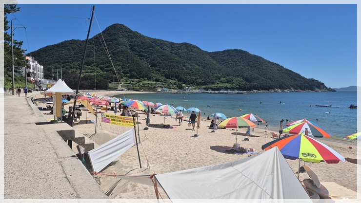 산행을 끝내고 비진도 해수욕장 바닷물에 풍덩 뛰어들어 더위를 식히고 싶지만 뒷마무리가 준비되지 않아 그냥 참기로 했습니다.