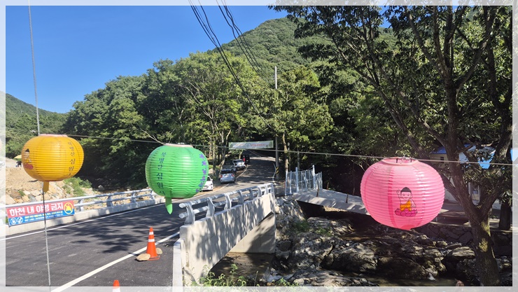 북병산 정상에서 여섯 번째 인증을 하고 옥녀봉을 바라 보았습니다. 날씨도 너무 덥고 희미하게 보이는 옥녀봉이 멀어도 너무 멀어 가기를 포기하고 심원사로 하산합니다. 심원사와 숲치유센터를 지나 열기를 내뿜는 아스팔트 도로를 따라 터덜터덜 걸어가다 혹시나 하는 마음에 삼거마을 정류장 버스 시간을 조회해 보니 지금 막 버스가 도착한답니다. 후다닥 달려가니 「JUST IN TIME」 이라고 정류장에 우리랑 버스가 동시에 도착합니다. 오늘 안코가 행운을 얻었습니다.