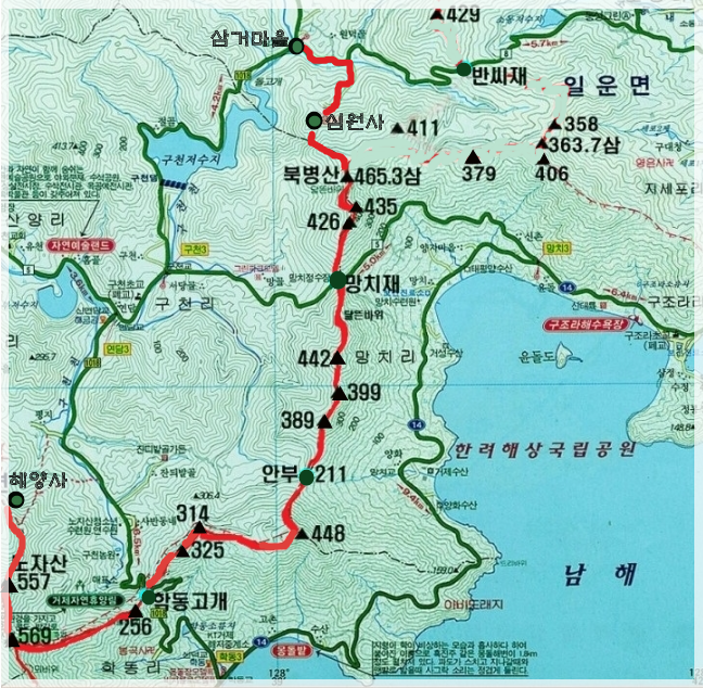 □ 산행 여정 : 혜양사→노자산→학동재→망치고개→북병산→심원사→삼거마을