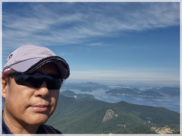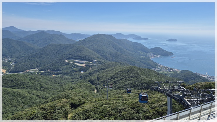 노자산 정상에서 다섯 번째 인증을 남기고 노자산 케이블카 전망대로 이동합니다. 시간 상으로는 빠른 오전이지만 작렬하는 태양의 열기가 장난 아니게 따갑습니다. 전먕대에 앉아 아이스 아메리카노 한 잔으로 한려해상의 빼어난 경치를 감상하며 소소한 행복을 가져봅니다.