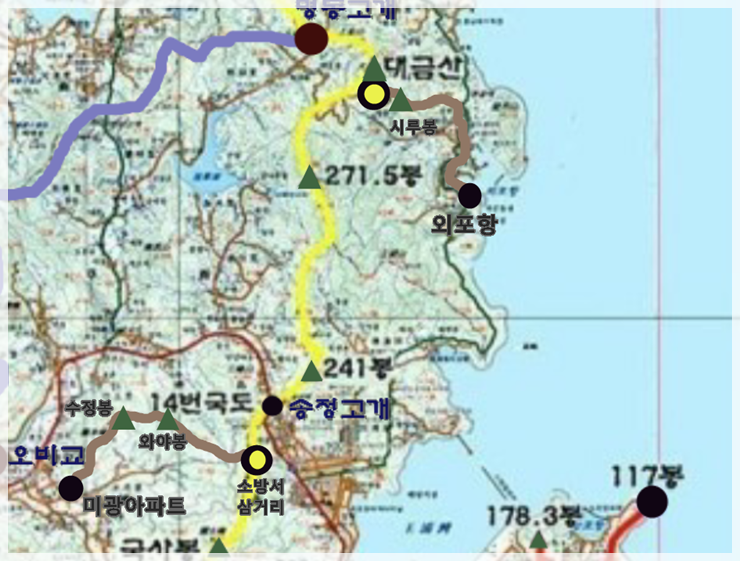 ◈ 언 제 : 2020. 11. 28 일요일(당일) ◈ 어 디 를 : 거제 남북지맥 다섯 번째 구간 ◈ 누 가 : 서팀장, 한대표, 지윤/덕규 형님과 앙코 ◈ 날 씨 : 맑은데 엄청 추움 ◈ 지맥 산행시간 : 정골재(9:00)→사불이 해변(15:35), 6시간 35분 ◈ 산 행 코 스 : 명동마을(8:30)→정골재→율천고개→율천산→도천골→두모고개 (관포고개)→대봉산→사불이 해변→양지마을(16:30), 8시간 00분 어쩌면 얼어 죽을 수도 있는 날씨라고 공지했습니다. 갑자기 날씨가 많이 추워졌습니다. 준비물을 전과동이라고 공지했더니 김밥이 도착하지 않았습니다. 버스터미널 인근 김밥 집으로 달려 5분만에 구입 완료했습니다. 덕규 형님이 보이지 않아 어찌된 일인지 물어보니 몇 일전에 부산에서 코로나 확진자를 ..