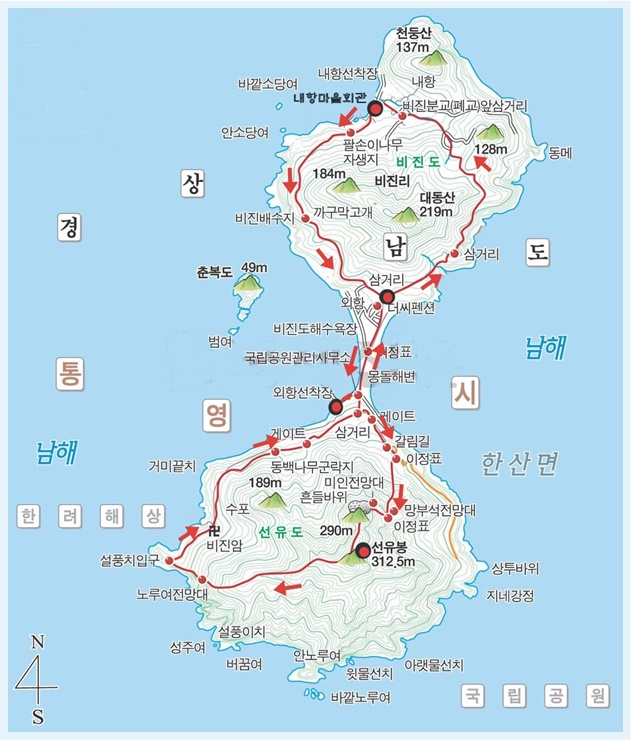[통영] 딱 10년만에 찾은 섬 – 비진도 선유봉 [312.5 m] ■ 언 제 : 2025. 7. 27 일요일 (당일)■ 어 디 를 : 비진도 선유봉 (312.5m)■ 누 가 : 덕규 형님과 안코■ 날 씨 : 맑음■ 산행 여정 : 외항마을→망부석전망대→선유봉→외항마을→내항마을→외항마을■ 산행 시간 : 4시간 45분 외항마을(9:45)-선유봉(10:53)-외항마을(12:30)-내항마을(13:45)-외항마을(14:30) 통영항 여객선 터미널에 주차를하고 아침식사를 위해 맞은편 서호시장 졸복 전문식당에 들렀습니다. 뼈 없는 졸복지리는 맛으로 먹기에는 그저 그렇고 그냥 배 채우는 것으로 만족했습니다.비진도를 왕복하는 한솔 페리호에 여름 피서객으로 북적이고 선체 내외부가 깔끔합니다. 다만 화장실 변기에 물이 올라오지 않아 비우기를.. 경상남도·부산·울산/고성·사천·통영 2025.07.27