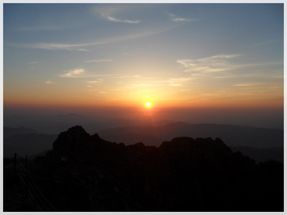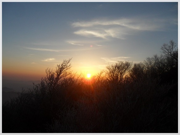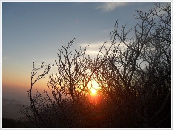 코골이 소리는 세석대피소라고 별반 다를 것이 없습니다. 새벽 3시에 천왕일출을 만나기 위해 세석대피소를 출발합니다. 매일 보는 태양이라도 천왕봉에서 바라보는 일출은 각별한 의미가 있습니다. 2시간 반의 빡신 걸음 끝에 천왕봉에 도착하니 장엄한 일출 쑈가 막 시작됩니다. 한마디로 감동 그 자체입니다. 삼대가 덕을 쌓아야만 볼 수 있다는 천왕일출을 나 고집통은 올 때마다 이렇게 잘도 만나는데 내가 아는 몇몇 사람들은 그것이 잘 되지 않아 애를 태우기도 합니다. 그러니까 평소 착하게 살며 덕을 베풀면 될 것을…. 천왕봉에는 상고대까지 피었으니 아직 봄은 저만치 있나 봅니다.