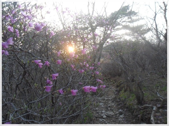 반야봉 일출을 생각했으나 비가 내리고 있고 바깥 기온이 너무 차가우며 새벽 무서운 바람소리에 놀라 그냥 포기했습니다. 언제 날씨가 그랬냐는 듯 돼지령 근처 지날 때 일출이 시작됩니다. 지리산 주능선에서 보는 일출은 어느 곳에서든 감동을 먹습니다. 반야봉에 올라서니 밤새 눈이 내려 있습니다. 지리의 주능선과 반야봉에 진달래가 막 꽃 봉우리를 틔우고 있는데 5월의 얄궂은 날씨는 그 꼴을 못보겠다는 듯 가만두지 않습니다. 꽃봉우리가 빠당빠당 얼어버렸습니다.