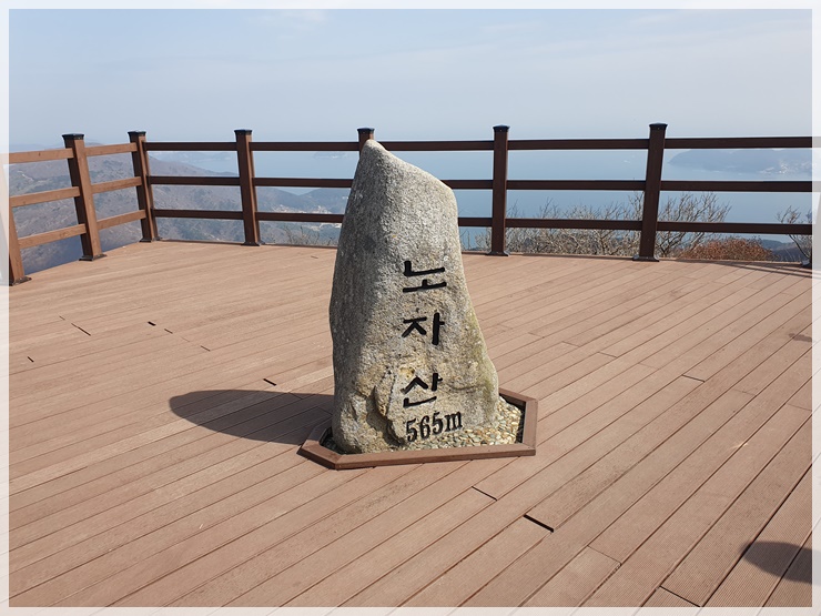 가라산 전망대에서 아름다운 한려해상을 조망하고 가라산성을 지나 가라산, 노자산 능선을 따라갑니다. 노자산에 거제 파노라마라는 케이블카가 움직인 이후 처음으로 와 보았습니다. 괴물 같은 거대한 건물과 허옇게 까뒤집어 놓은 임도가 노자산이 흉물스럽게 변해 버렸습니다. 미안했었는지 노자산 가는 길과 정상에 나무데크로 정리해 놓았습니다.